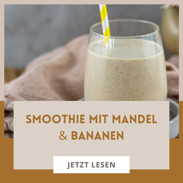 Enthält Werbung in Form von Partnerlink Ein einfaches Rezept für einen Low-Carb-Smoothie mit Magerquark, Mandelmus, Banane, Mandelmilch und Zimt –